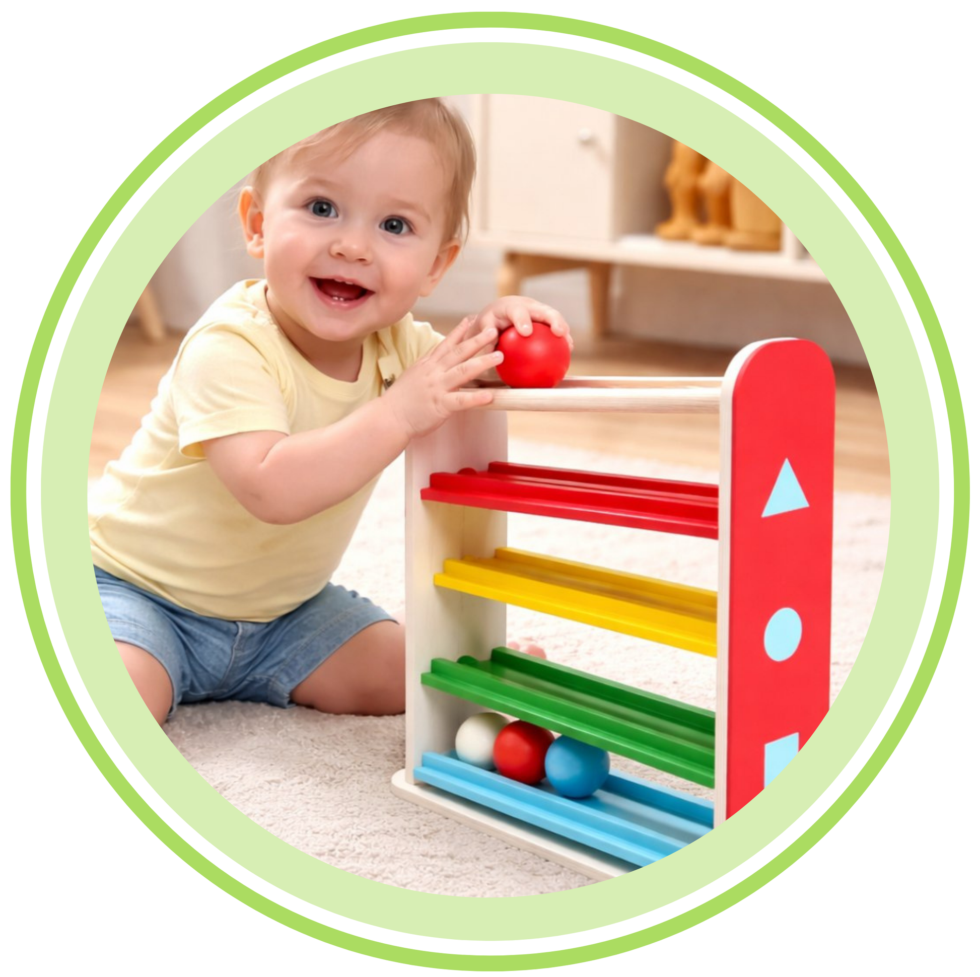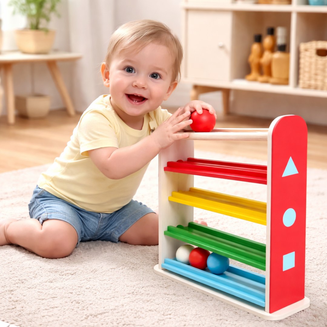 Roll, Watch, Learn – A Montessori Classic for Growing Minds. Introduce your baby to the joy of motion, pattern, and discovery with Wooden Ball Tracker. Specially designed for babies aged 6 months and above, this ramp toy is more than just entertainment—it’s a developmental tool that promotes visual tracking, fine motor skills, and early problem-solving. As your baby places a wooden ball at the top and watches it roll down the track, they naturally explore cause-and-effect relationships, eye-hand coordination, and motion awareness. The 3 included balls are just the right size for little fingers, and the natural wood build ensures a safe and tactile experience. Perfect for tummy time, floor play, or quiet exploration, this Montessori toy fits seamlessly into any nursery, daycare, or early learning space.