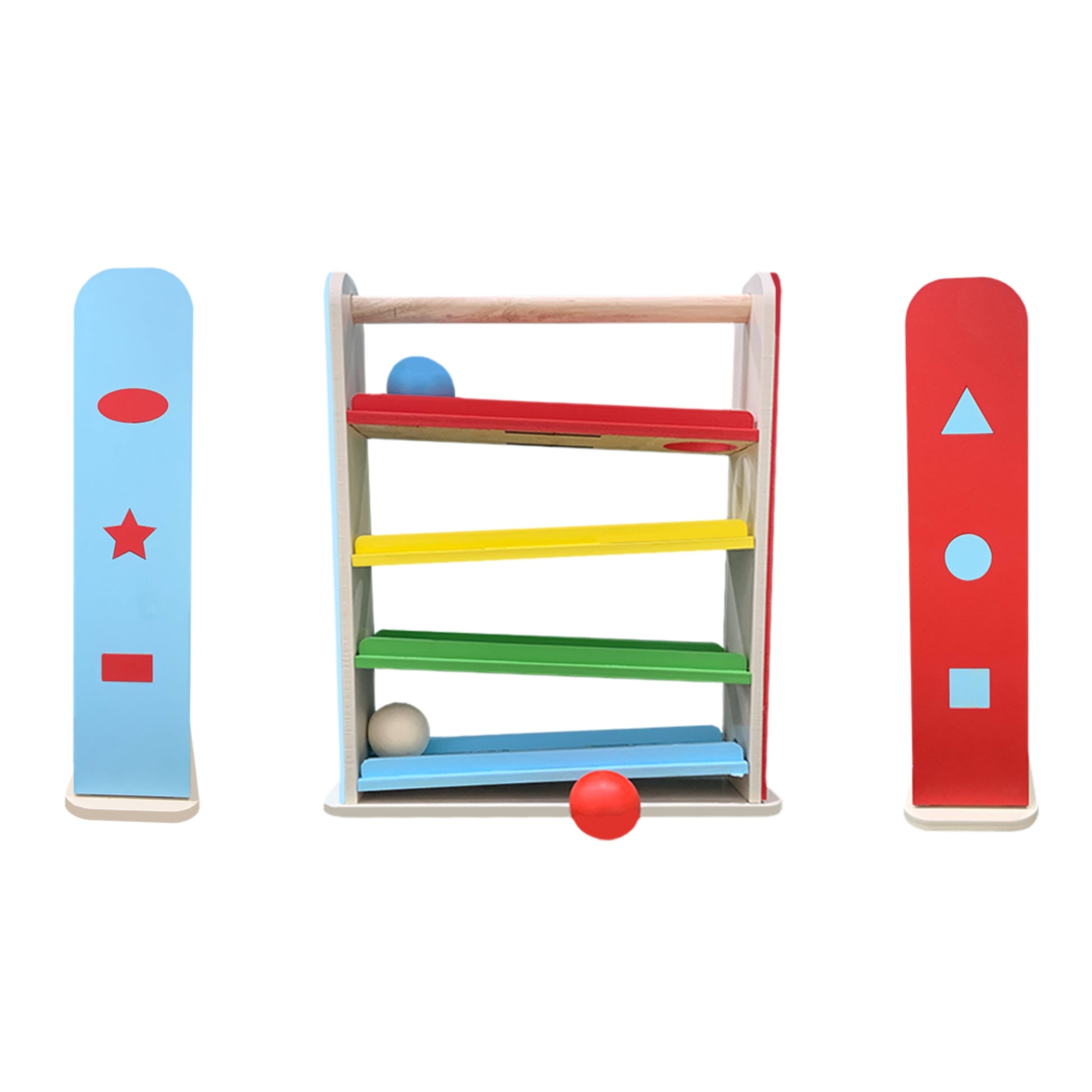 Material: Premium eco-friendly wood Includes: Wooden ramp + 3 rolling wooden balls Recommended