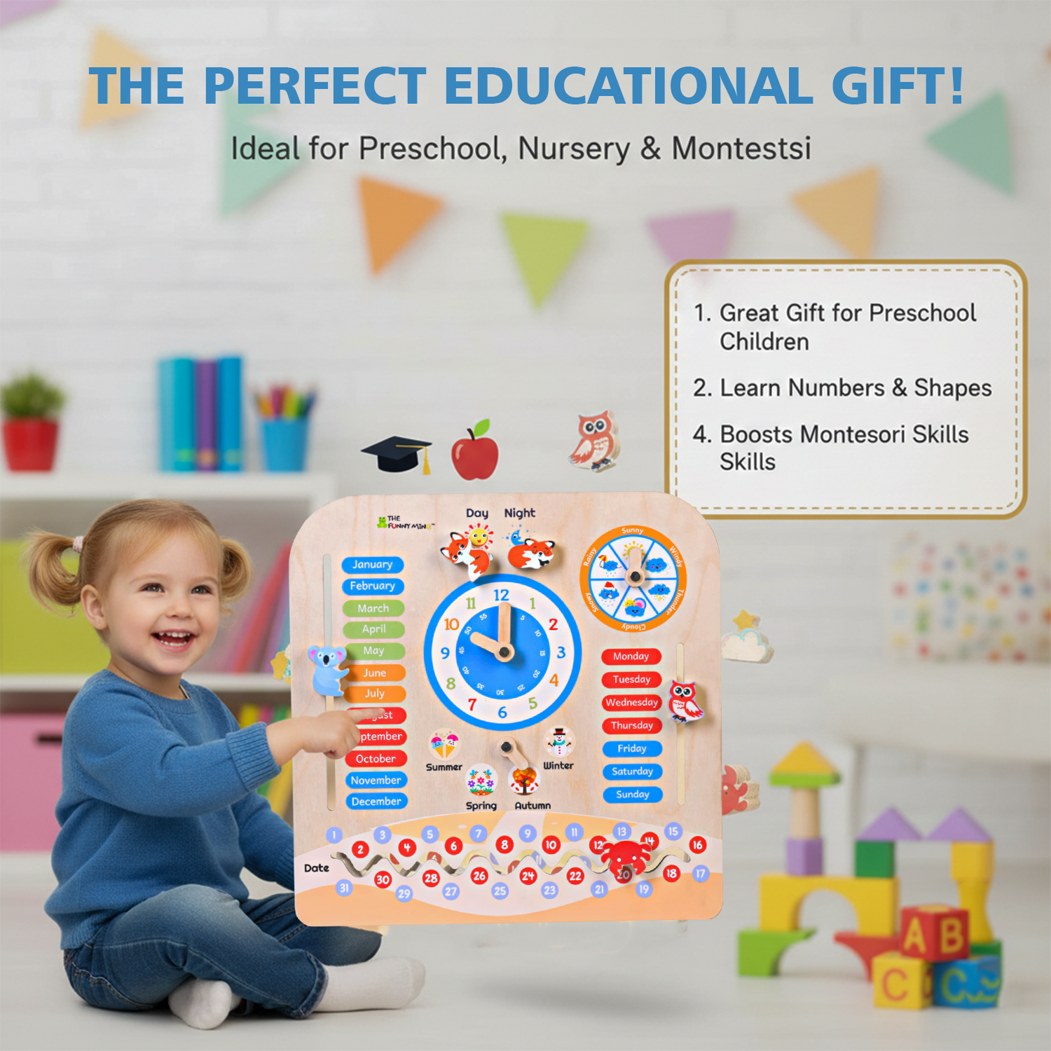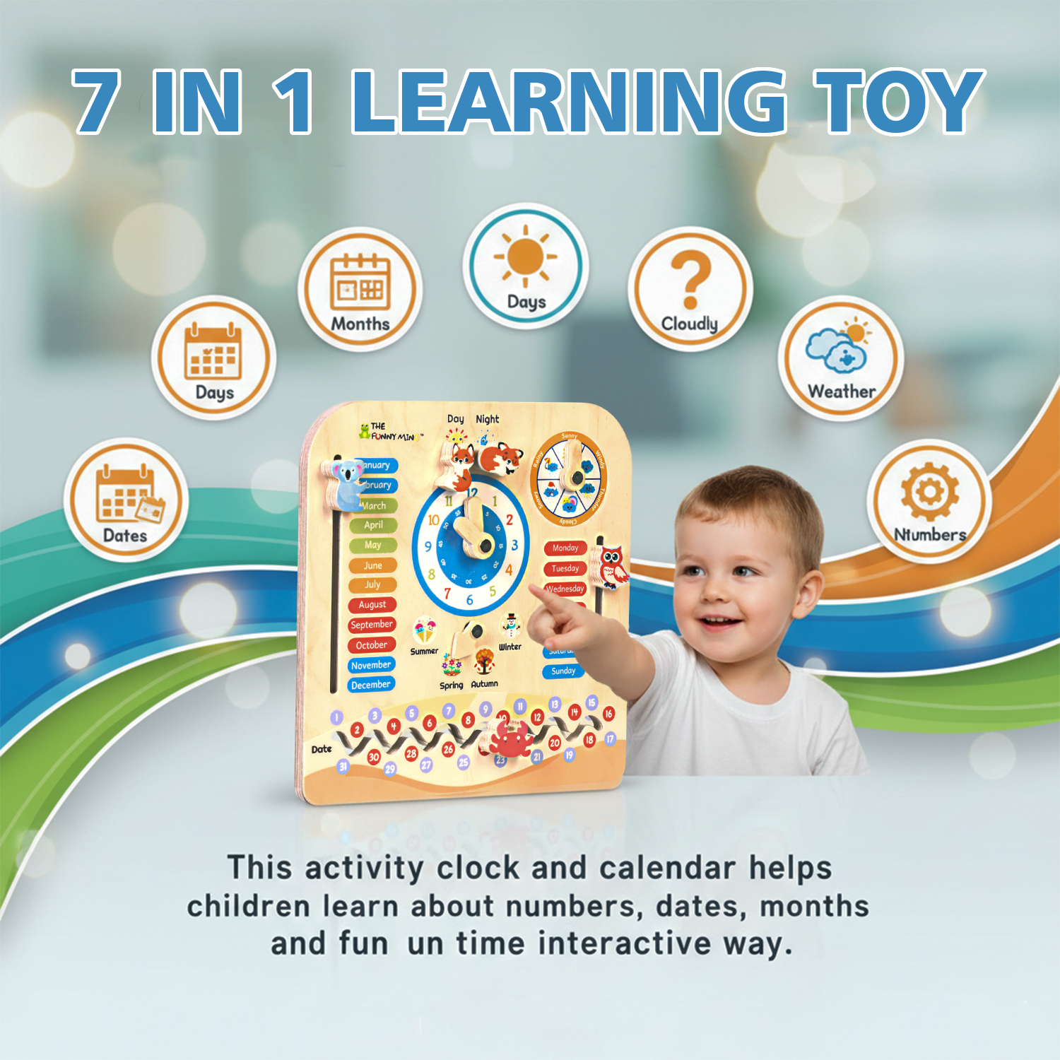7 in 1 Learning Toy: This activity clock and calendar helps children learn about numbers, dates, days, months, and time recognition in a fun and interactive way.