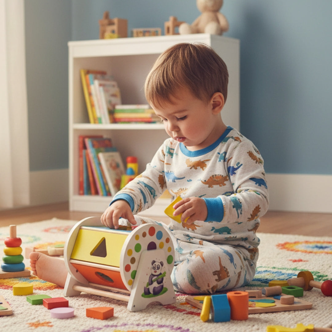 The Funny Mind Wooden Wheel Spinner Drum is specially designed to promote sensory play, helping toddlers develop important skills such as focus, concentration, and hand-eye coordination. As children interact with the spinning drums, they refine their fine motor abilities and improve their cognitive development through playful exploration.